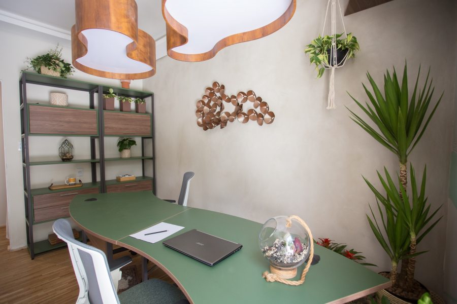 Com a pandemia o home office se tornou a realidade de muitos. Por isso, as arquitetas Candice Ruwer Vidor, Luciana de Morais e Rejane Pimenta projetaram um espaço que estimula a produtividade e nos conecta à natureza. | Foto: Beto Lima