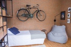 Com suporte para bicicleta, o quarto assinado pelo arquiteto Bruno Moraes traz o estilo moderno e industrial para a Casa Saudável. | Foto: Beto Lima