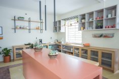 Com ilha e bancadas em silestone, a cozinha projetada pela arquiteta Tânia Fróes também conta com o reaproveitamento de um piso de madeira, que foi aprovado nos testes da HBC como material saudável. | Foto: Beto Lima