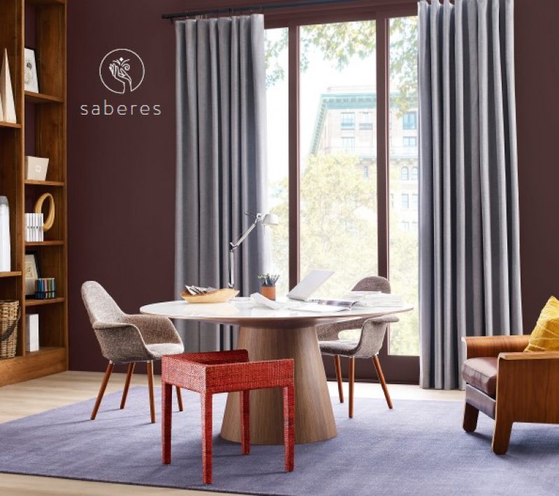 A paleta “bioma” combina ricos tons da terra e as cores do céu nublado em busca do equilíbrio perfeito entre o ecossistema existente e a constante transformação; a “Saberes” estimula a criatividade e se conecta com uma intrigante combinação de tons avermelhados, argilosos, pastéis acinzentados e tons de joias preciosas;