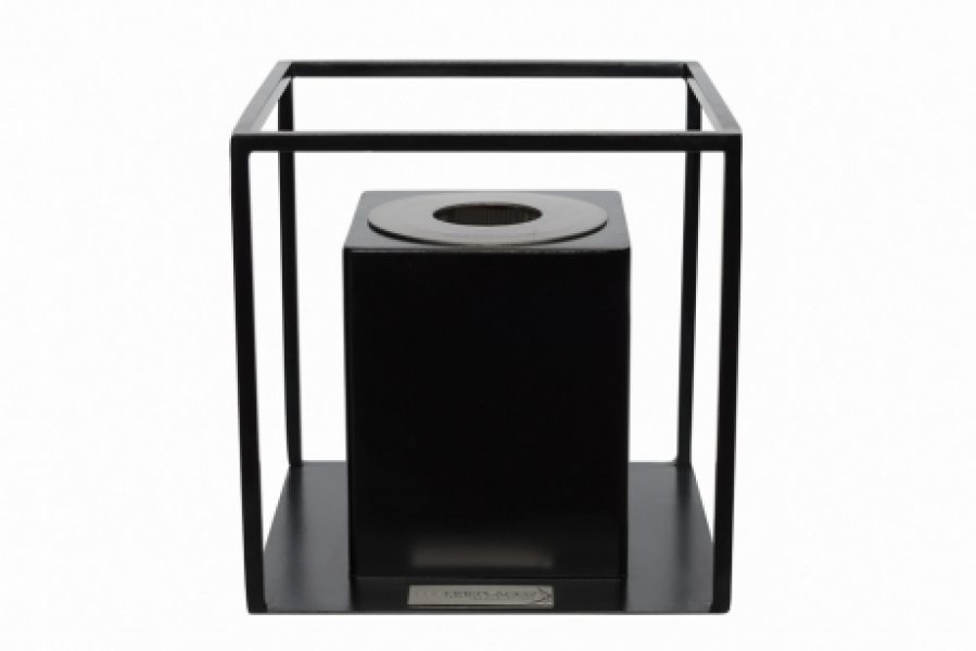 Lareira Ecológica Portátil Ecofireplaces, com base de aço tipo corten e queimador com capacidade para 800 ml de Biofluido. Aquece uma área aproximada de 10 m² e pesa 3 kg. Com dimensões de 25 x 25 x 26 cm.