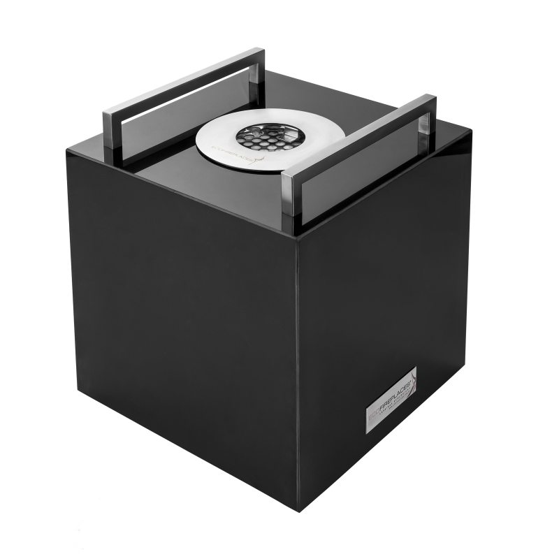 Lareira Ecológica Portátil Ecofireplaces, com base em porcelanato. Queimador com capacidade para 800 ml de Biofluido. Aquece uma área aproximada de 10 m² e pesa 10 kg. Com dimensões de 25 x 25 x 25 cm.