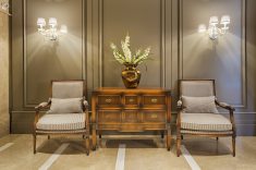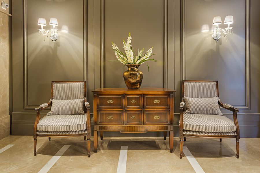 Essas características continuaram presentes, e através do tempo foi ganhando elementos modernos e contemporâneos. A principal característica do estilo clássico é o uso de formas rebuscadas nos objetos e móveis, com predominância do uso de mármore e madeira.