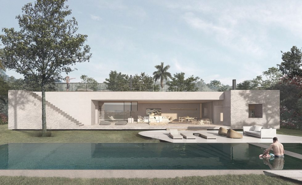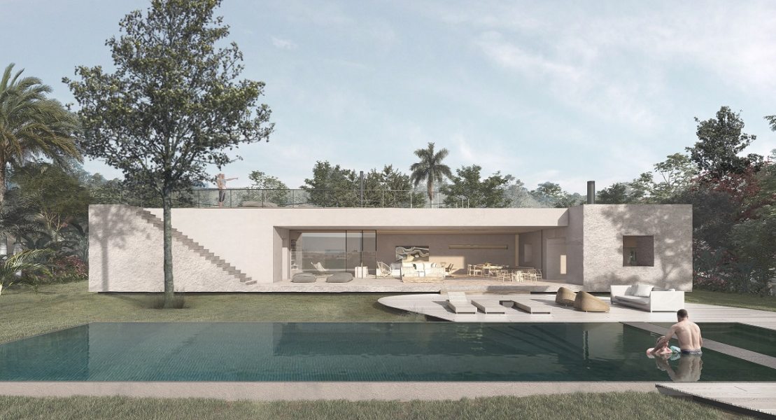 Idealizada a partir do desejo de trazer a simplicidade da vida no campo e a natureza para dentro de casa, o projeto de residência de fim de semana está localizado na Fazenda da Grama em Itupeva, interior de São Paulo. Ele aposta na pureza dos materiais como solução estética e conta com layouts amplos e arejados. No pátio central está a organização de toda a planta, trazendo o verde, a luz e a ventilação para a área interna. A área social é totalmente integrada, e cozinha, gourmet, salas e terraço formam um grande ambiente de convívio voltado para a vista das fazendas.