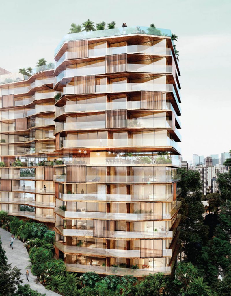 Localizado em São Paulo, o projeto foi construído inteiramente em madeira certificada e demonstra a tendência de naturalização da arquitetura, além de propiciar uma experiência sensorial total. A proposta apresenta soluções inovadoras para o material empregado - a madeira - e é uma rápida construção que conta com longa durabilidade. Trata-se de uma verdadeira metáfora de uma floresta urbana habitável com madeira visível e invisível e o uso da vegetação e da paisagem.