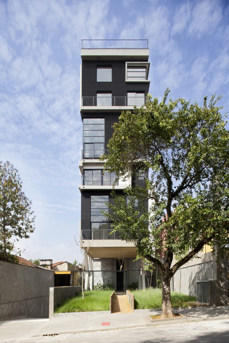 O edifício-casa vertical localizado no bairro paulistano Vila Madalena é destaque por sua estrutura e revela um horizonte dividido e panorâmico. A proposta foi alimentada pela complexidade do local, tornando-se uma referência na região. De qualquer ângulo em que o prédio é localizado, encontram-se apartamentos um diferente de outro, pois o posicionamento das janelas não se repete. Dividido em dois blocos, com fachadas de concreto, tijolos e vidros são exibidos e interligados por uma circulação vertical. Suas colunas de sustentação em formato de “X” são referências do arquiteto Rem Koolhaas.