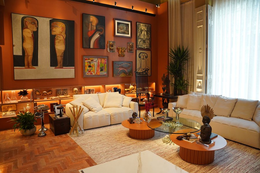 O espaço é uma homenagem a Carlos Augusto Lira, arquiteto apaixonado por colecionar arte popular. A escolha das peças e dos objetos de coleção é uma referência à sua paixão pelo belo, enquanto a seleção de mobiliário contemporâneo cria um espaço moderno e atemporal. As cores da Coral protagonistas aqui são a Bege Montaria e Pote de Argila.