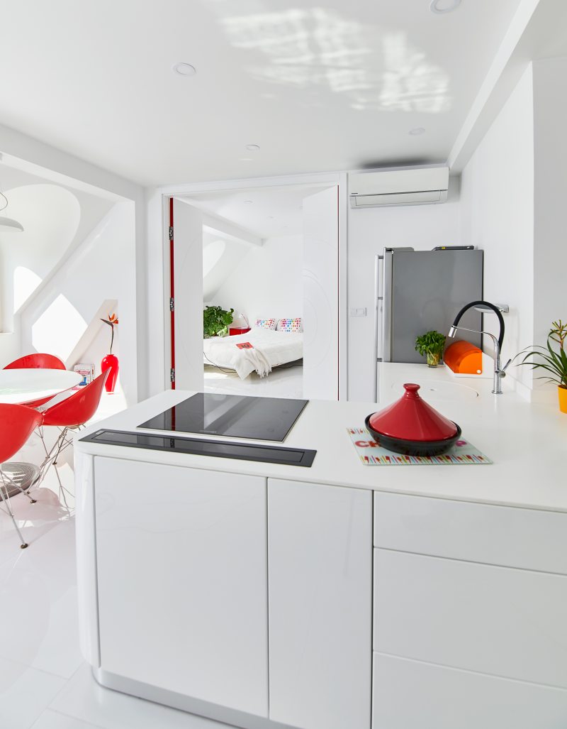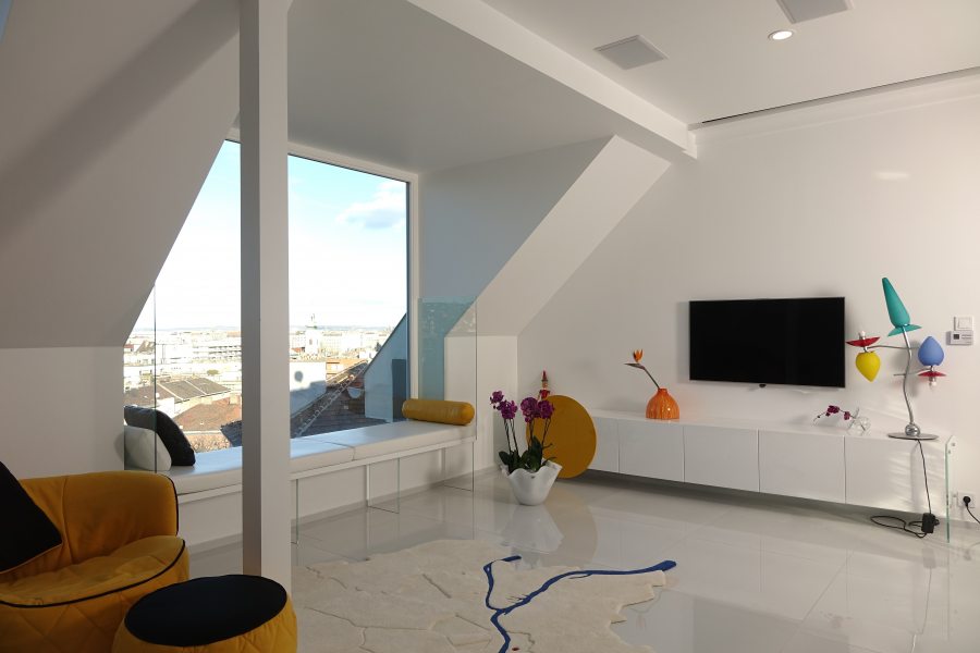 Situado no centro histórico de Budapeste, capital da Hungria, em um prédio que data da década de 20, o apartamento de 110 m² reformado por Margit Szinger e Géza Hamori, do Margeza Design Studio, é uma jóia rara. Com amplas janelas que permitem visualizar o rio Danúbio e os principais pontos turísticos da cidade – o Parlamento pode ser visto até do banheiro – o apartamento de dois andares é minimalista e divertido. “Nós não nos sujeitamos a nenhuma regra. Usamos paredes curvas, mobiliário arredondado e cores intensas nos espaços, para que reflitam um espírito jovial e brincalhão”, contam os profissionais.