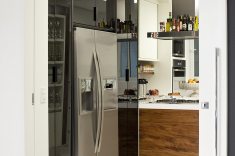Para atender a reforma de uma cliente ligada ao ramo da moda, o arquiteto paranaense Marcelo Salum, em parceria com Flávia Gugliemi, usou referências das passarelas na decoração para transmitir a personalidade da moradora. Os contrastes usados em alguns ambientes transmitem harmonia entre arquitetura e moda, o que para Salum foi o objetivo principal do projeto. “A casa, assim como a roupa, é uma de nossas camadas e precisa estar em sintonia com quem a habita”, diz.
