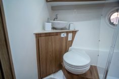 As pedras usadas em cozinhas e banheiros são selecionadas não só pela estética, mas pela resistência às mudanças de temperatura. O inox — presente em detalhes estruturais e decorativos — precisa ter alto desempenho para enfrentar umidade constante. Nada é escolhido por acaso: cada material sustenta um tipo de vida a bordo.