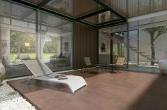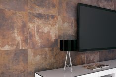 O aço corten foi desenvolvido ainda nos anos 30 para o uso em ferrovias devido a sua resistência à corrosão. De lá para cá tem sido fonte de inspiração e ganhou destaque no universo da decoração pelo seu aspecto enferrujado, tons avermelhados e caráter industrial. A Série Fire (abaixo) em formato lâmina 120x250cm reproduz com perfeição todas essas peculiaridade e reações ao tempo, imprimindo ao porcelanato ares de desgaste natural.
