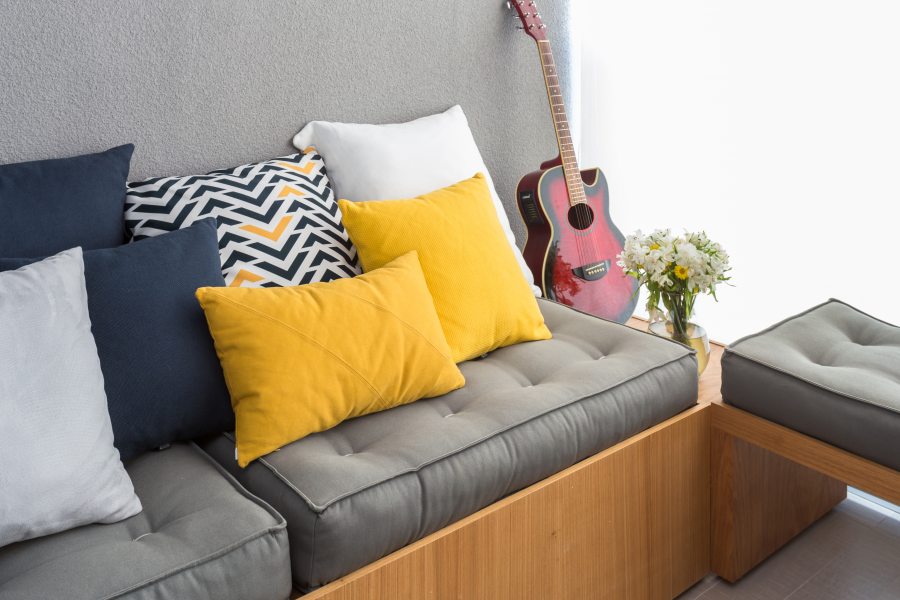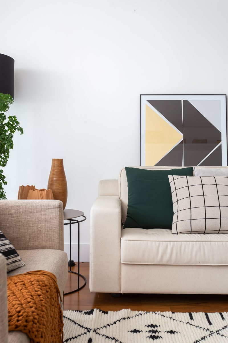 Quando se trata de tamanho é fundamental considerar as proporções. "Almofadas pequenas em sofás ou camas muito grandes, assim como peças grandes em móveis pequenos, ficam estranhas e não harmônicas", alerta Claudia. O mais tradicional são as almofadas quadradas com dimensões 45cm x 45cm, mas, como são fáceis de personalizar de acordo com a demanda do projeto, é possível encontrar também peças de 30cm x 30cm ou 60cm x 60 cm. Para as retangulares, as versões mais procuradas variam de 25cm x 45cm, 40cm x 50cm ou 30cm x 50cm – o segredo é que a peça tenha de 10cm a 20cm de diferença entre altura e comprimento.