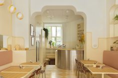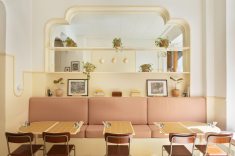 O estúdio de arquitetura ASKA assina o décor do Café Banacado - empreendimento localizado em Estocolmo, capital da Suécia. Os tons de amarelo pastel são a base da paleta de cores, que também inclui tons quentes de marrom e off-white. Pensada para evocar os dias ensolarados de Cuba, a decoração combina elementos vintage, como o mobiliário e as paredes com fotos polaroid, à simetria e cenografia pitoresca dos filmes de Wes Anderson.
