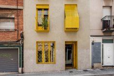 O estúdio de arquitetura Anna e Eugeni assina o projeto deste edifício residencial em Barcelona, na Espanha. Localizado em um bairro tradicional, sujeito a limitações regulatórias quanto à aparência externa, o imóvel exigiu soluções criativas para modernizar a arquitetura sem destoar excessivamente da aparência dos imóveis vizinhos.