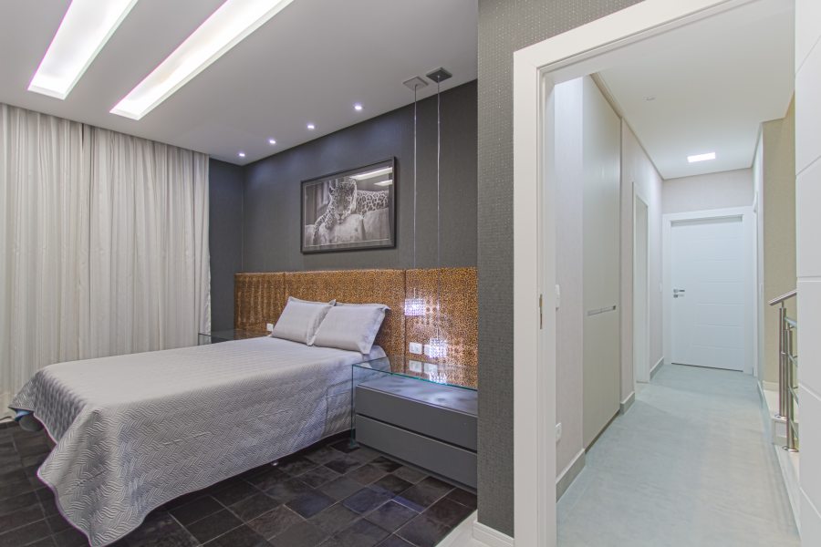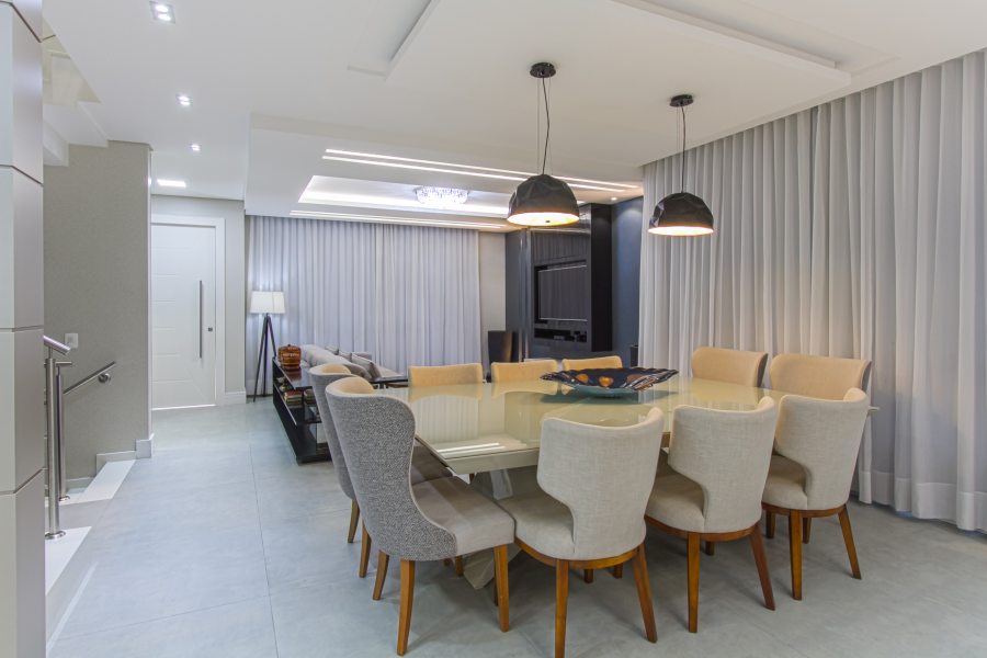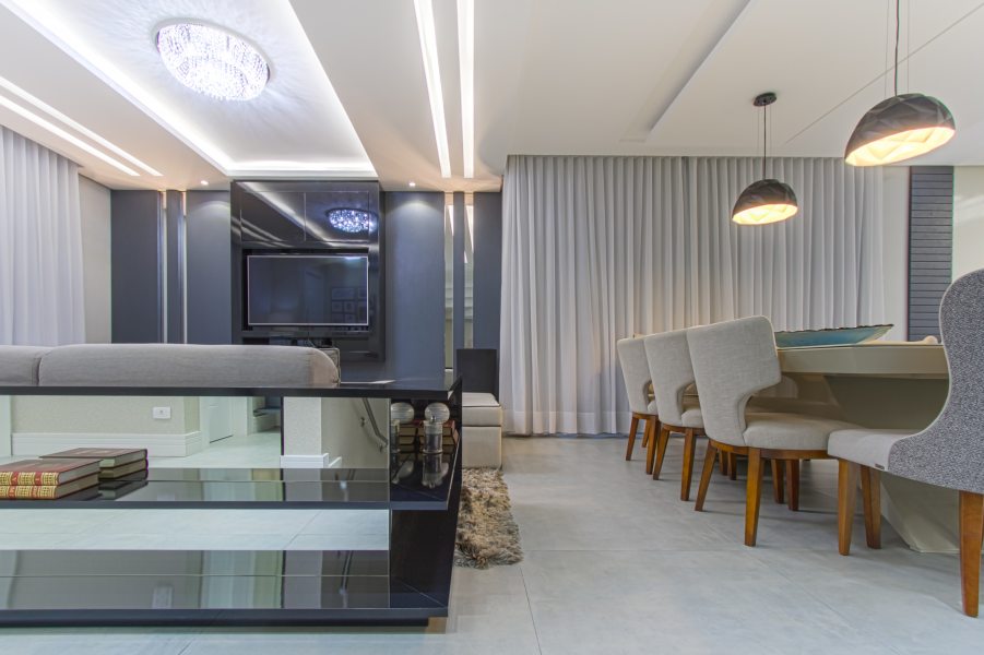 A iluminação é funcional, mas pode ser facilmente alterada para uma configuração mais intimista, criando