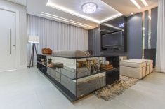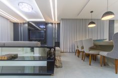 cenários distintos em um único espaço. “O mobiliário foi todo executado sob medida pela Marcenaria Oldine,uma grande parceria do escritório”, conclui Roseli.
