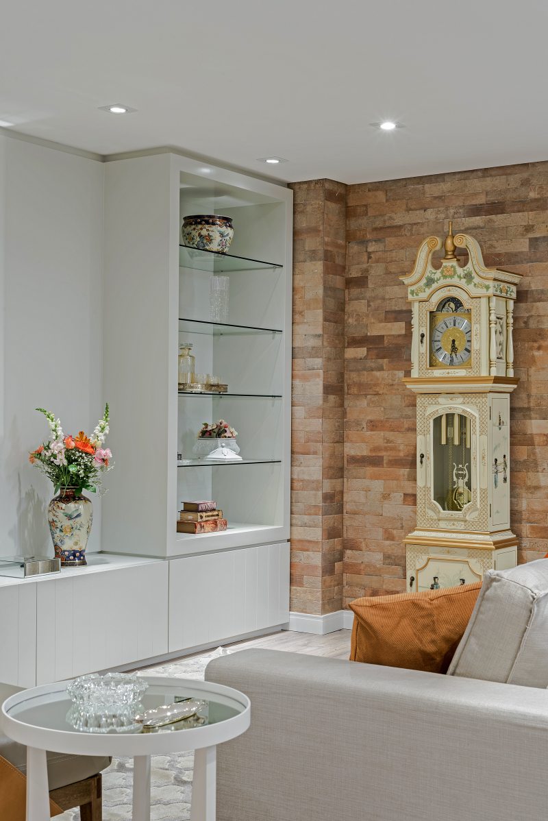 “Eles queriam algo amplo para as crianças brincarem e ambientes bem distribuídos, porém integrados. Também pediram para que tudo ficasse dentro de um estilo entre o rústico e o romântico e que fossem incorporadas peças do acervo familiar como o antigo relógio de pedestal”, conta a arquiteta Ester.