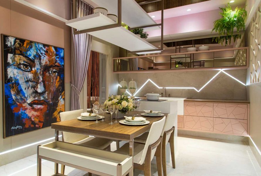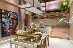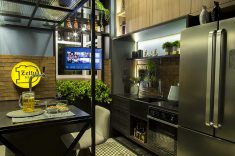 Com 16,5m², o espaço investe em funcionalidade para o estilo de vida atual e preza pelo “amor através do convívio social”. Os padrões utilizados foram o Ipê Amarelo e o Frapê.