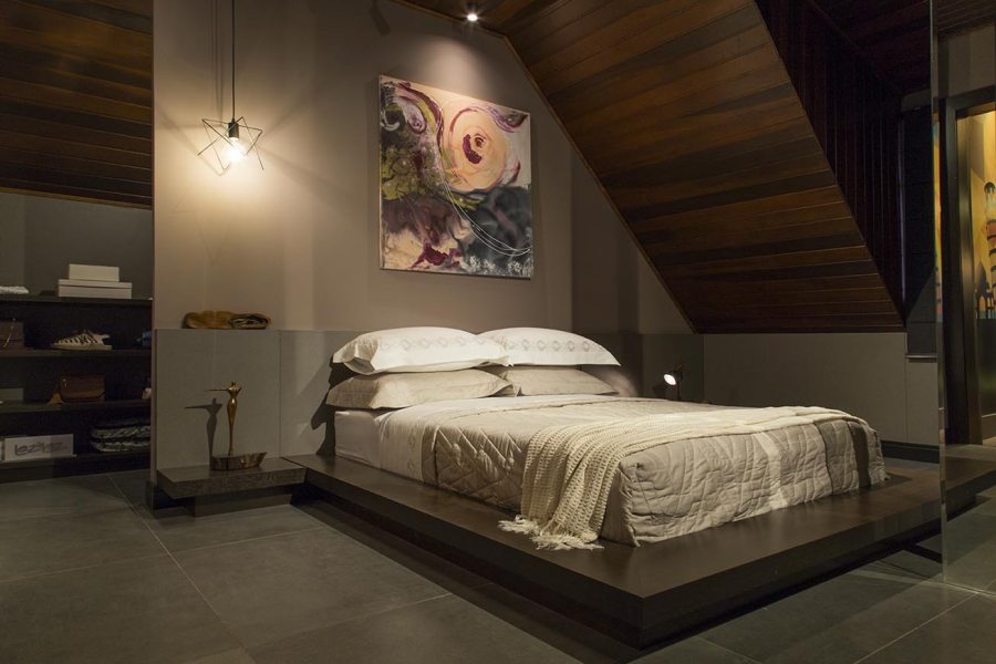 Assinado por Pamela Kessel e Mariana Passos, o My Places conta com 12m² e faz uso do padrão de Grafito nos painéis, que serviram como revestimento das paredes. O espaço foi pensado para um jovem viajante que une os estilos clássicos e rústico industrial.