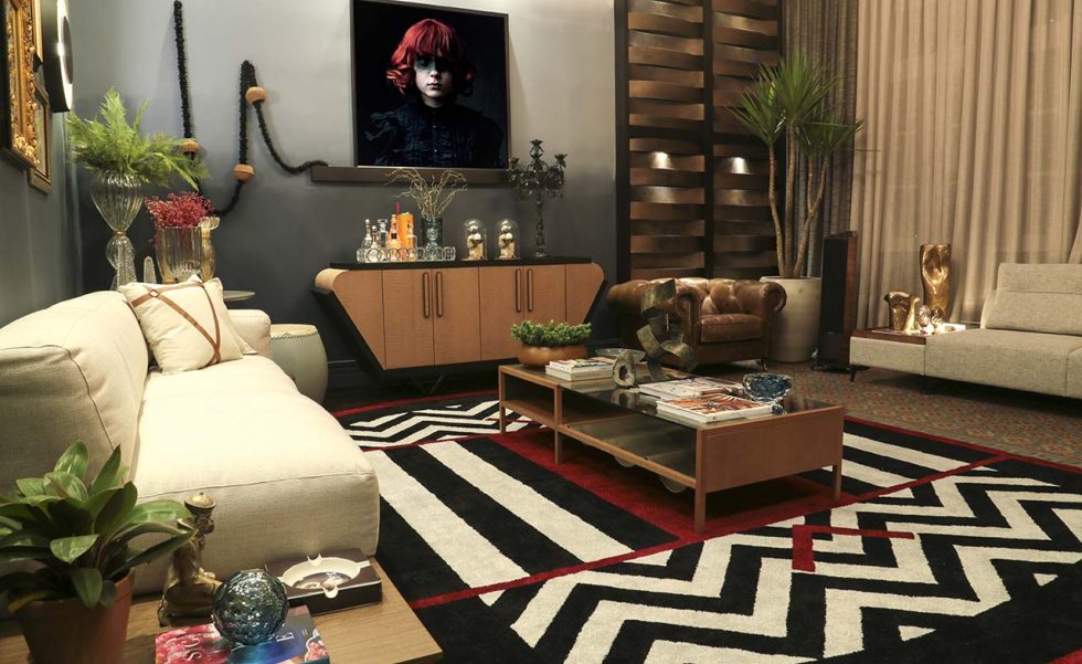 Ébano e Grafite dão o tom deste ambiente, também assinado pela Gouveia & Bertoldi. Os padrões foram utilizados no balcão do bar, estante e no painel para automação. O ambiente é despojado e contemporâneo, ideal para receber amigos e organizar festas.