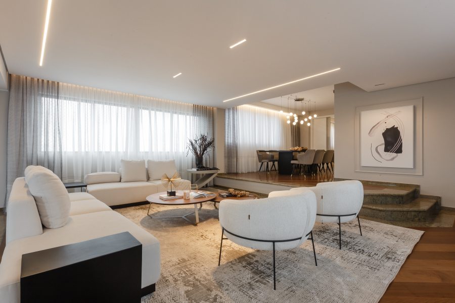 Este apartamento residencial de 478m² no bairro São Pedro, em São José dos Pinhais, é o lar de um casal que aprecia design contemporâneo e décor sofisticado. Encarregada do projeto da área social do imóvel, a designer de interiores Karen Salomons logo percebeu que o mobiliário da Masotti Curitiba seria a escolha ideal. “A Masotti além de atender muito bem a mim e aos meus clientes, sempre possui móveis sofisticados no showroom que encantam os olhares dos clientes.” – elogiou.