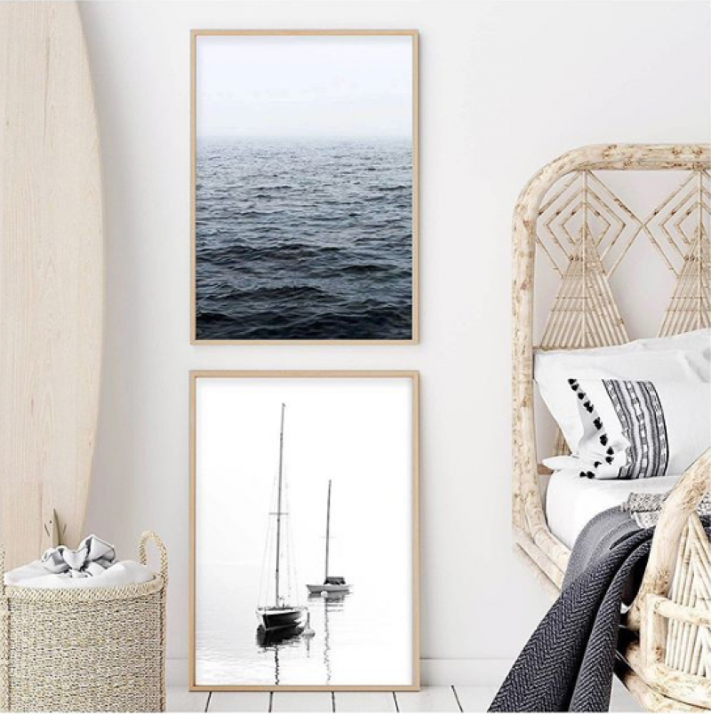 Para fechar a composição em clima marítimo, nada melhor que belas paisagens inspiradoras estampando as paredes. Abaixo, algumas ideias do site australiano Olive et Oriel para te deixar com vontade de tirar aquele projeto de reforma do papel.