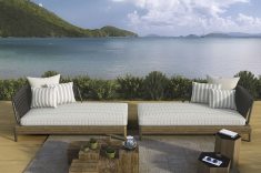 Nada mais prático na hora de pensar na manutenção dos móveis da praia. Com os tecidos impermeáveis, ninguém se preocupa se pode ou não sentar molhado ou sujar algum móvel de areia, pois a limpeza é super fácil. As arquitetas indicam o couro ecológico em tons claros e os tecidos com tecnologia Acquablock (à prova de líquidos).