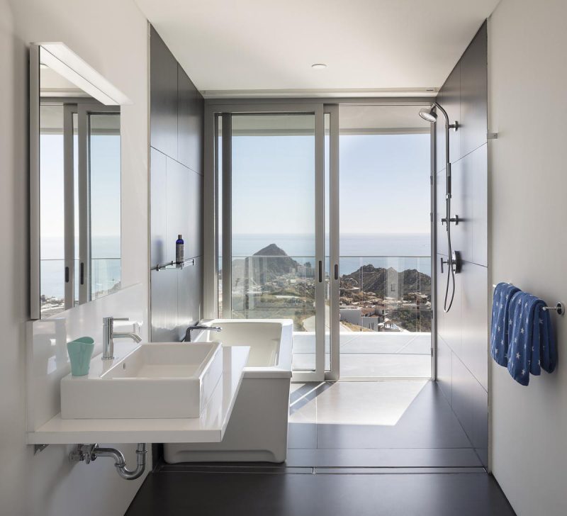 Construída no topo de uma montanha na ponta da Península de Baja, em Cabo San Lucas, no México, a Casa Ambar é um projeto que entende a força do território e responde a ele com precisão. Mais do que ocupar o terreno, a casa se encaixa em sua inclinação acidentada e faz da própria geografia o elemento que conduz temperatura, luz e circulação.