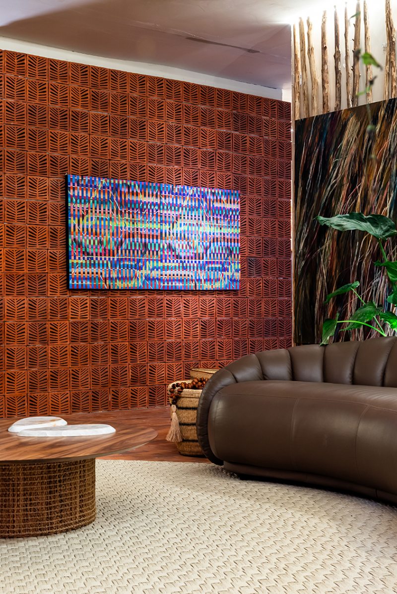 Essa busca por materialidade mais autêntica aparece tanto em projetos residenciais quanto em exposições e instalações experimentais. Um exemplo recente está na atual Bienal de Arquitetura Brasileira, em São Paulo, com o ambiente Casa da Terra, assinado pela arquiteta Fernanda Rubatino.