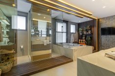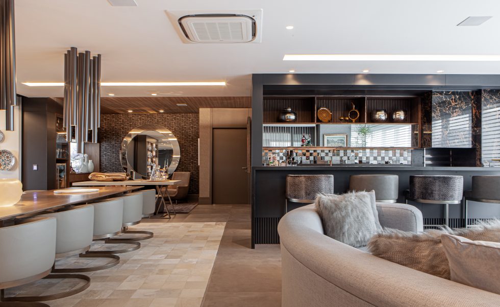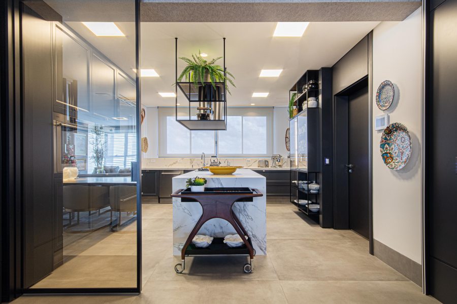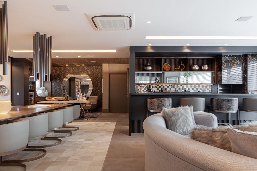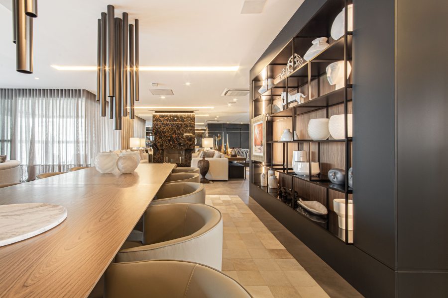 O artista plástico Bruce S. Garranbrandt costumava afirmar que “a criatividade não espera pelo momento perfeito: ela cria a perfeição a partir dos momentos comuns”. Esta frase reflete, muito bem, o projeto idealizado pelas arquitetas Olga Bergamini e Karen Nietzke para o apartamento do casal de clientes com um filho adolescente: “A família optou por trocar o imóvel em que residia, no Água Verde, pelo apartamento de 431m² de área privativa no Ecoville. A necessidade de maior amplitude e as novas demandas da família, que possui uma vida social bastante ativa e recebe amigos e familiares semanalmente, determinou a proposta marcada por um luxo moderno, com pinceladas clássicas em obras de arte. O casal é apreciador de obras de arte, valoriza o conforto, praticidade e produtos de alta qualidade e design.” – revelaram as profissionais.