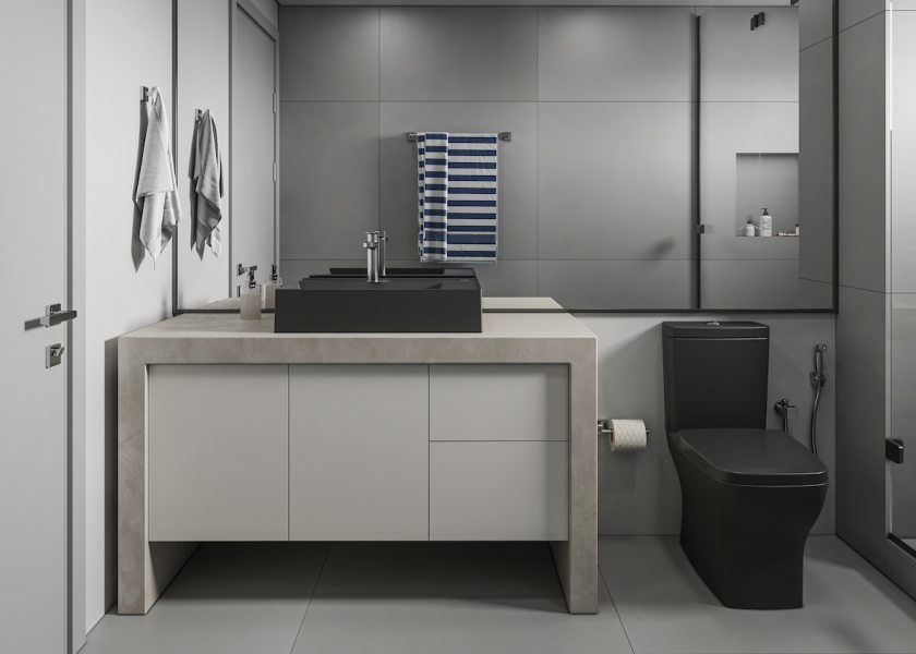 A nova aposta da Incepa, a cor Matte Black, imprime um décor mais moderno. A cor está disponível na linha Platinum de cubas e Boss e Neo de bacias sanitárias. | Foto: Divulgação Incepa