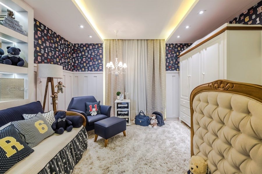 O desafio deste ambiente foi adequar o espaço às necessidades de um quarto de bebê completo, com estilo moderno e clássico. Destaque para Linha Quater, exclusivo da Sonhos de Ninar e para a composição de tecidos e papel de parede.
