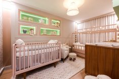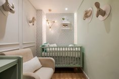 Boiserie, off-white, menta e dourado marcam o projeto de Indira Macedo Fuzon que optou por fugir do tradicional tema safari. O ambiente traz elementos dos animais, como se fosse em um sonho, mesclando com detalhes modernos no mobiliário, iluminação e decoração.