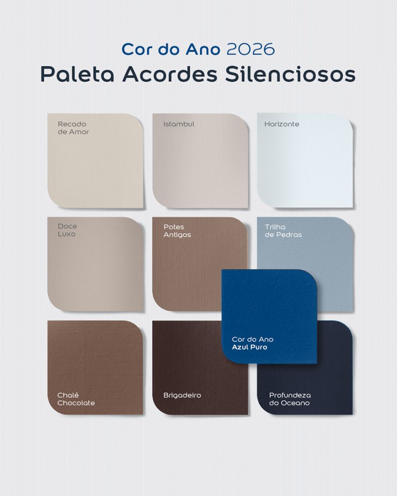 Na 22ª edição do ColourFutures™, estudo global de tendências da AkzoNobel — fabricante das tintas Coral —, o Azul Puro foi eleito A Cor do Ano 2026. O tom reflete o desejo coletivo por pausa, equilíbrio e reconexão, inspirando espaços que acompanham o ritmo de cada pessoa.