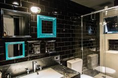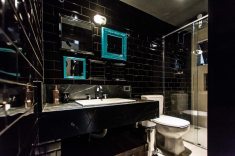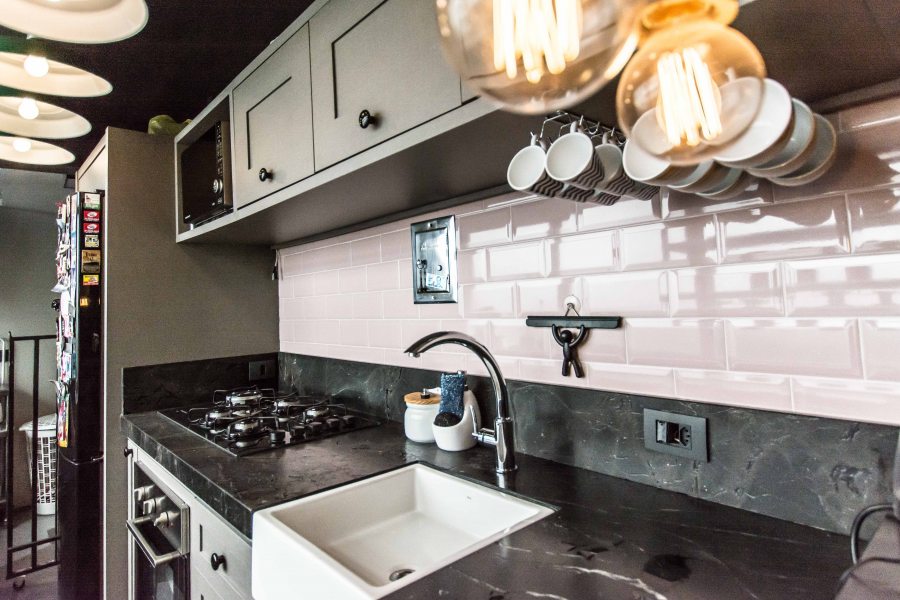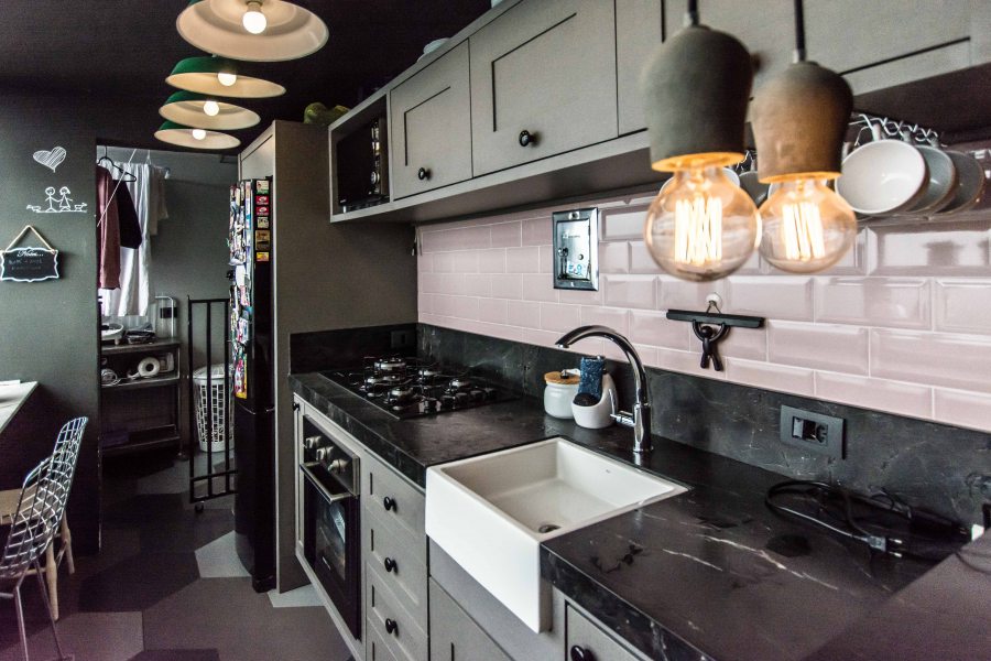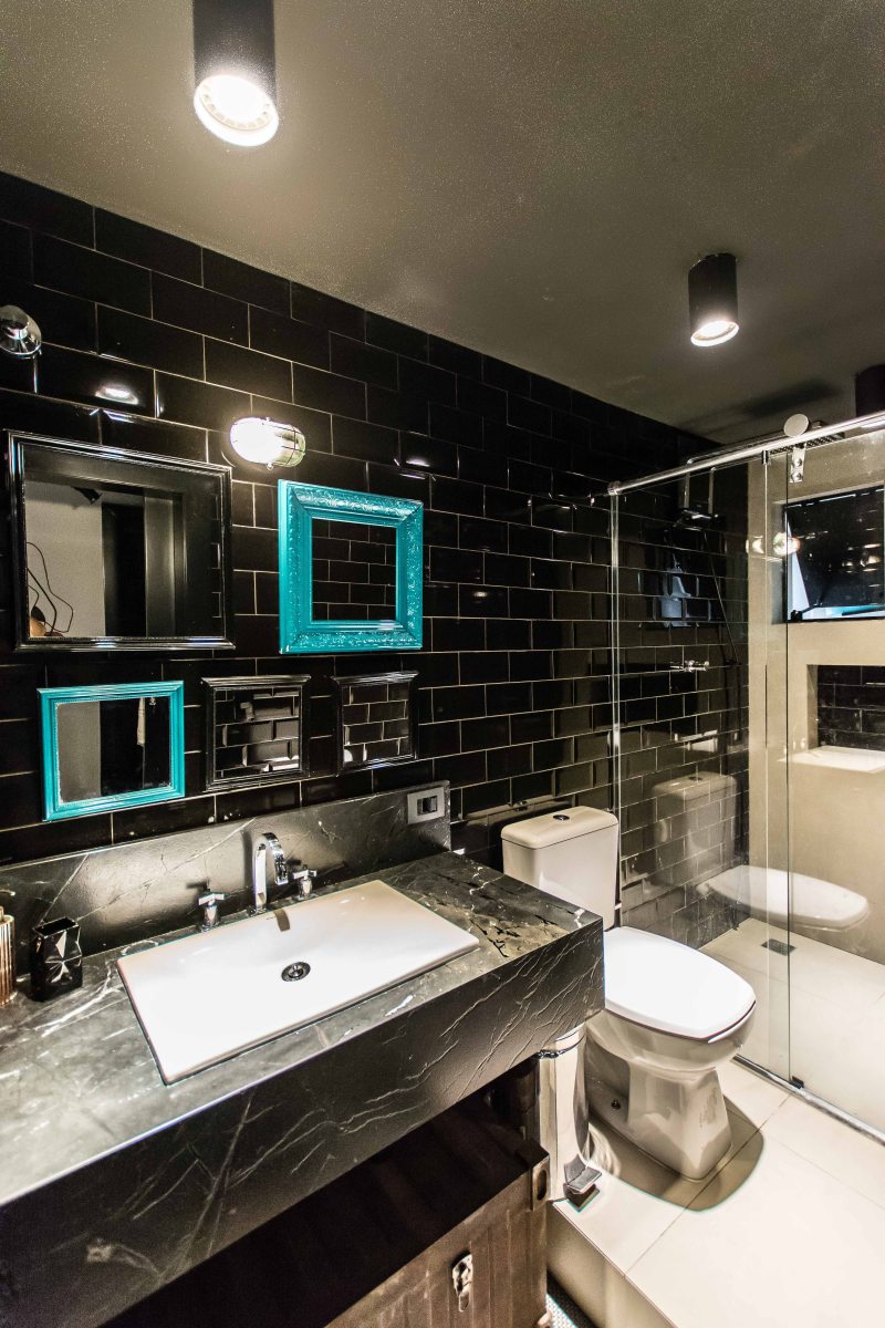 No banheiro e na cozinha, revestimento "subway tiles" - o azulejo de metrô - em tom rosê e preto, respectivamente. "O projeto foi desenvolvido com o conceito industrial, buscando integrar bem as áreas sociais para receber os amigos", comenta Anna Karolinna. A sala de estar é integrada com a sala de jantar, com mesa para oito pessoas e abertura para a cozinha. Os objetos decorativos foram garimpados pela cliente em suas viagens pelo mundo. Confira todas as fotos do projeto na galeria: