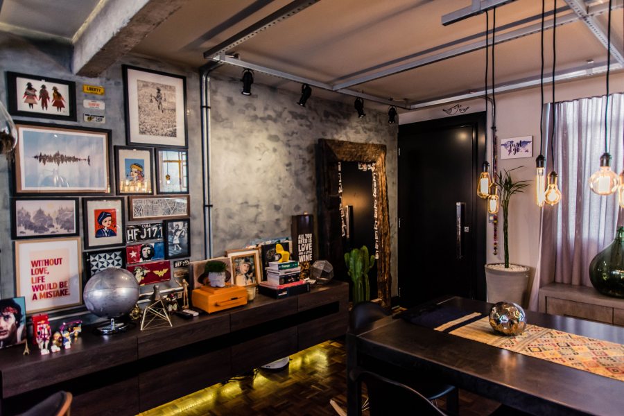 Onde: Curitiba • 02 de Julho - 2018 | Fotos Emmanuel AlencarApartamento de 85 m² traz cores escuras, estética industrial e décor composto por lembranças de viagem.