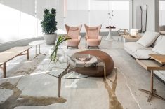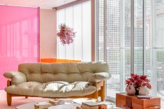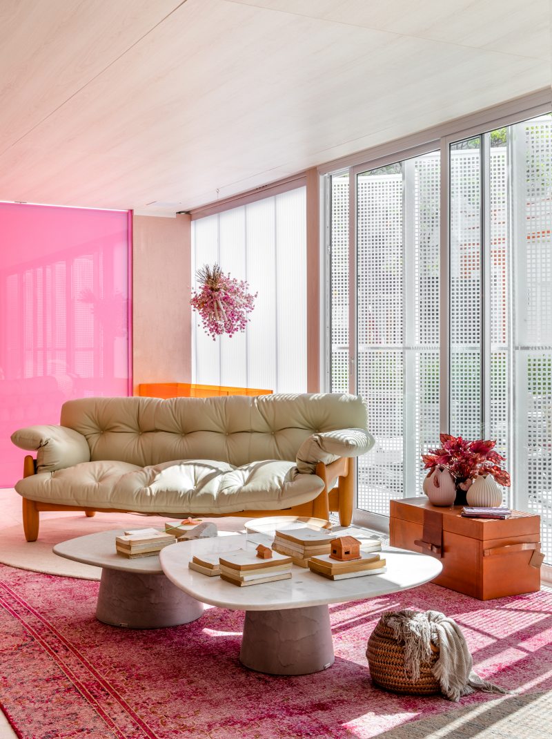 Quem prefere um décor mais sutil pode apostar em pequenas "pinceladas" de cor-de-rosa para abrilhantar o décor. Neste projeto, assinado por Luciana Baggio, as peças da Simmetria Ambienti - em releitura das clássicas wing chairs - foram o ponto alto da ambientação. As poltronas Wing, de Jader Almeida, apresentam o rosa em sua forma mais sofisticada, incorporando a estética Barbiecore por meio de uma paleta de cores neutra e cheias de nuances.