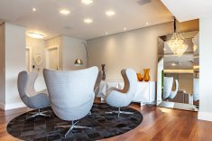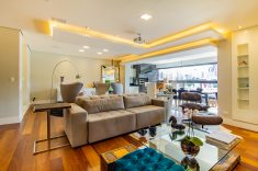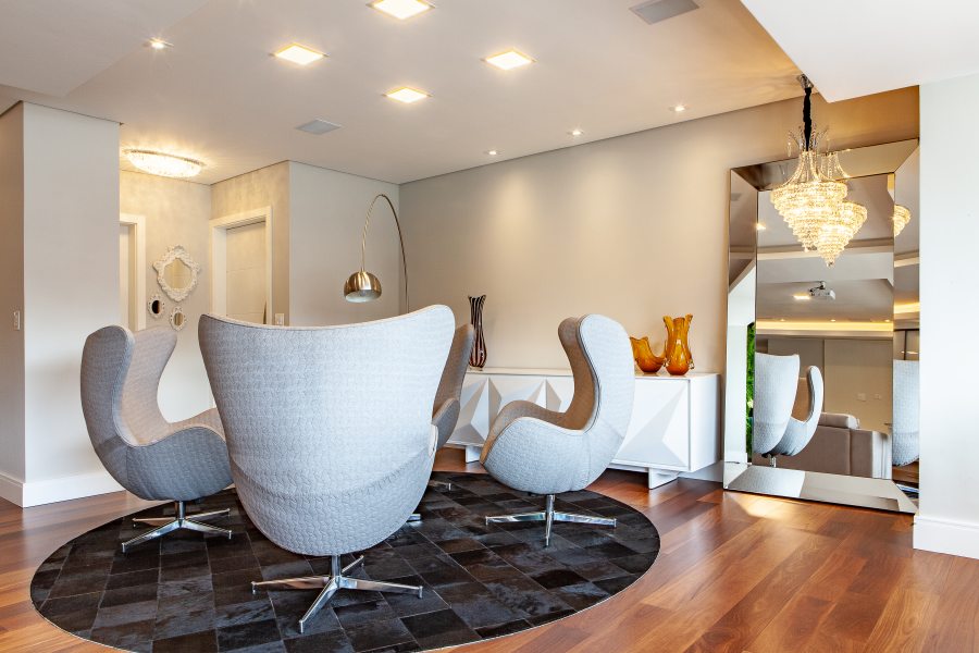 O potencial do apartamento de 250 m² no Água Verde, em Curitiba, era grande: “Percebi que o espaço, naturalmente bem iluminado, trazia excelentes condições para o desenvolvimento de um projeto arrojado”, conta a arquiteta Elyse Bacila, responsável pela repaginação do apartamento. A varanda, antes separada por uma porta de vidro, foi transformada em varanda gourmet e integrada à área social da casa, comunicando-se com cozinha, sala de estar e home theater. A profissional explica que o luminotécnico, garimpado na Grey House Iluminação, foi determinante para definir e integrar os espaços de forma harmônica: “Sou muito bem assessorada pela Grey House que me auxilia sempre na solução dos desafios com atendimento personalizado e excelente pós-venda”, finaliza