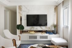 Além da contratação de mão de obra especializada, um detalhe valioso antes da execução é observar minuciosamente a simetria e alinhamento da boiserie com as paredes. “Sem essa análise, a boiserie acaba se tornando problema super evidente. Para não prejudicar, é sempre importante alinhar o desenho com a altura de portas, janelas e objetos decorativos que ajudarão a trazer um horizonte para o olhar”, explica Gabriela.