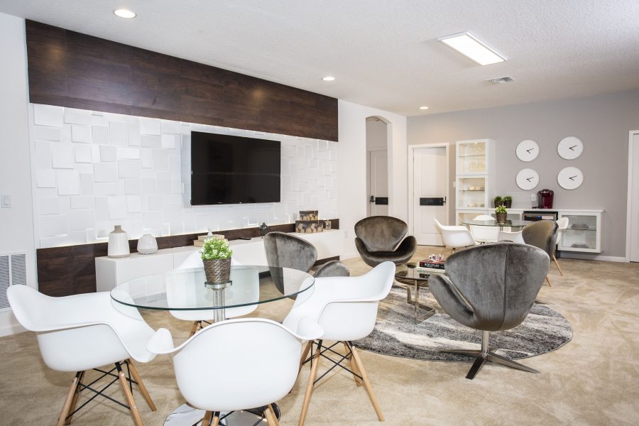 O desafio da designer de interiores Flavia Gueiros neste projeto foi transformar uma casa de férias com 15 suítes em um hotel, em Orlando, onde cada hóspede poderia contar com sua privacidade e compartilhar áreas em comum. “Como a casa poderia abrigar diferentes pessoas ou grupos da mesma família, tudo foi pensado e elaborado para qualquer tipo de situação”, completa a fundadora da FG Interiors, empresa com sede em Orlando, nos Estados Unidos, especializada na decoração de imóveis com perfil premium.
