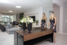 Com mansões de brasileiros e também famosos que embarcaram na vida americana em seu portfólio, Flavia Gueiros dirige uma equipe de 12 profissionais, reconhecidos no mercado pelo alto nível de excelência e encara o desafio de atuar no mercado de luxo americano com propostas contemporâneas e muito criativas. Ela é responsável pela FG Interiors, empresa que atende mais de 50 fornecedores de móveis e decoração, zelando pela qualidade e eficiência. “Trabalhamos com móveis sob medida, quadros, luminárias e cortinas customizados, nossa empresa conta com um know how de mais de 18 anos atuando ativamente no setor de móveis e decoração”.