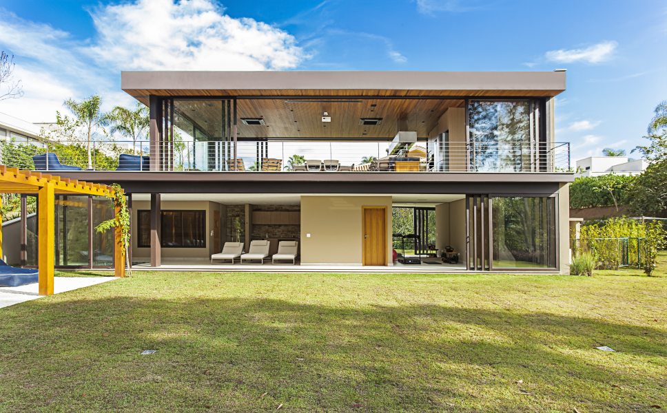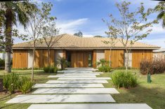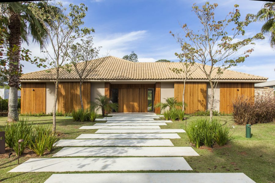 Revitalizar e renovar foram as palavras da vez: a reforma, capitaneada pelo escritório Korman Arquitetos, das arquitetas Ieda e Carina Korman, transformou essa casa de campo com 940 m2, em um local ainda mais aconchegante e convidativo. Localizada no município de Itu, interior de São Paulo, a casa transmite imponência por meio do contraste da extensa fachada com o azul do céu. Painéis de garapeira foram aplicados às faces da casa antiga, totalmente repaginada com um extenso gramado e generosas pisadas de 2,50 x 1 m, de granito itaúnas levigado.O paisagismo da entrada, assinado pela profissional Catê Poli, se mistura com os elementos naturais da fachada, dando boas-vindas às visitas.