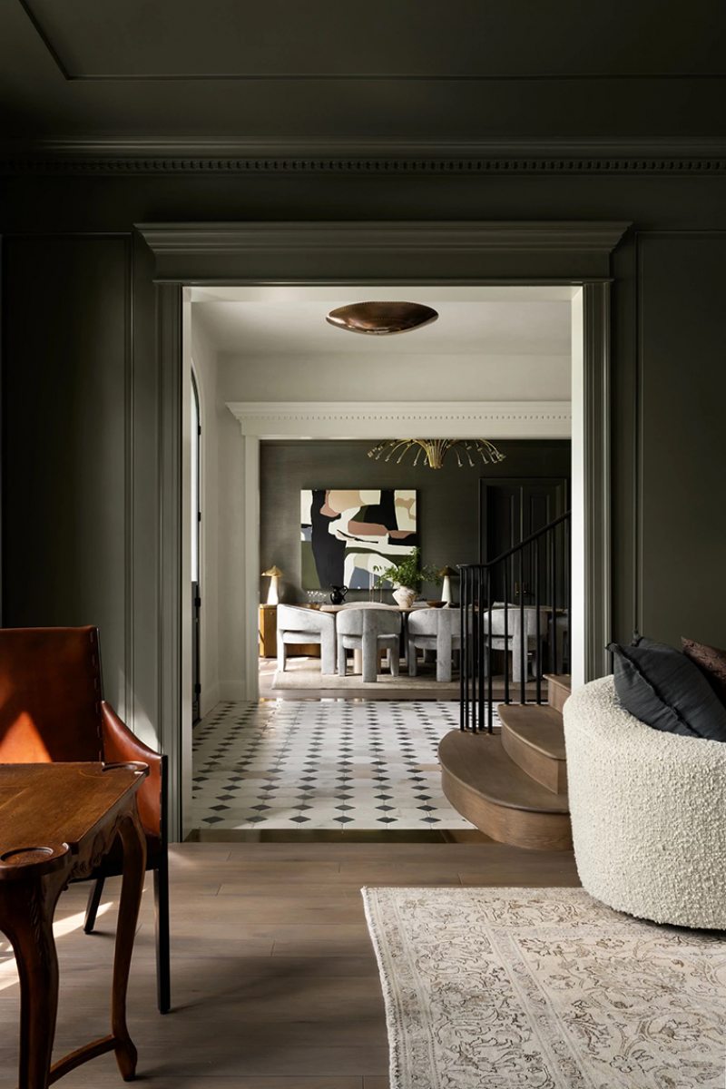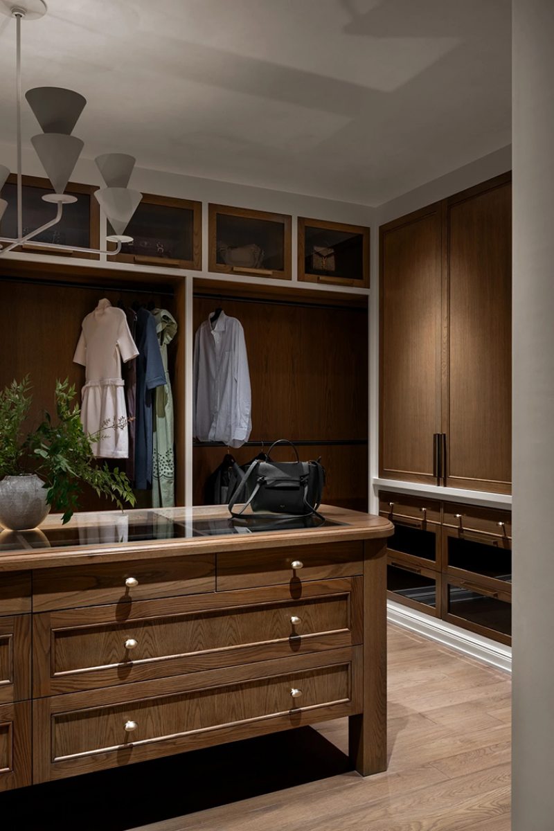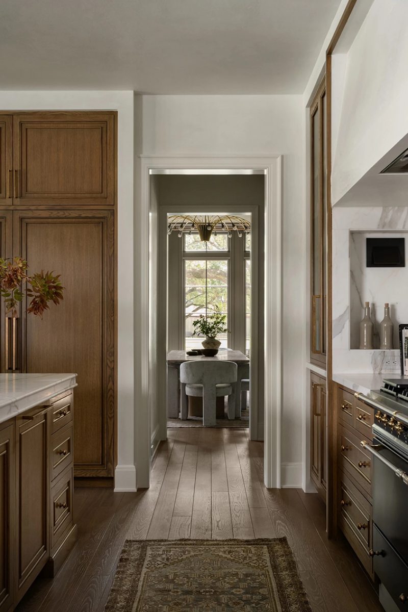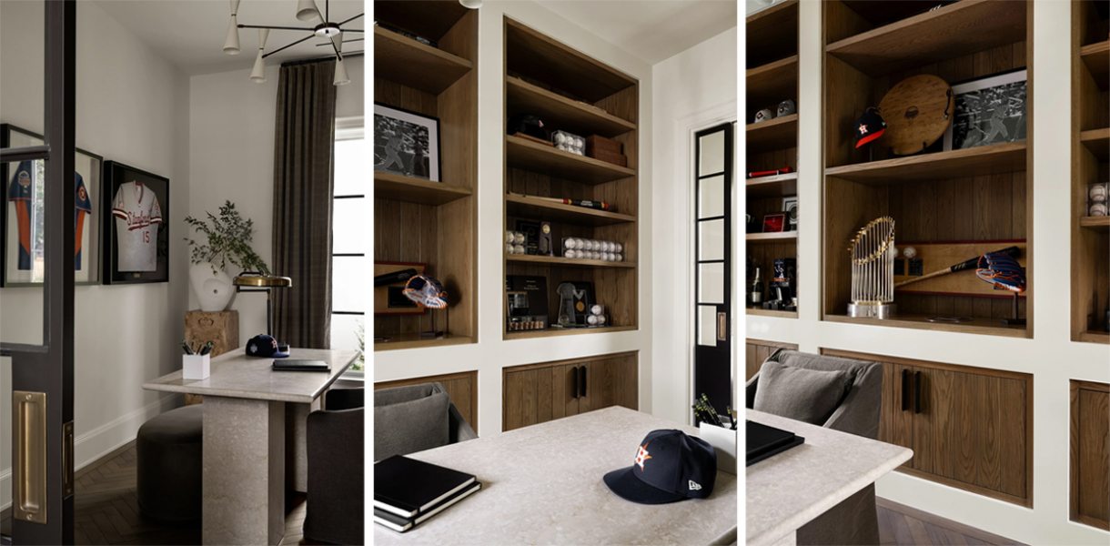 Localizada em Houston, a residência foi concluída em 2024 como casa da família do ex-jogador da Major League Baseball (MLB), principal liga profissional de beisebol dos Estados Unidos, Jason Castro. A proposta parte de uma base arquitetônica clássica para construir interiores acolhedores, marcados por madeira, marcenarias desenhadas sob medida e uma paleta mais densa e quente.