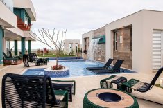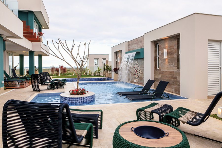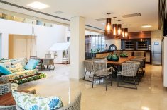 Para criar a casa de veraneio dos sonhos, a arquiteta Solange Bacilla, do escritório Sklan Arquitetura e Engenharia, foi buscar inspiração na estética clara e aconchegante dos hotéis de praia. “A exigência principal da cliente era que a casa fosse moderna, com espaços amplos, integrados, grandes janelões de vidro e sem telhado aparente”, comenta a arquiteta. Composta por casa principal, com cinco suítes, e casa de apoio, o projeto aposta em cores claras, transparência, luminotécnico bem pensado e móveis cuidadosamente escolhidos.