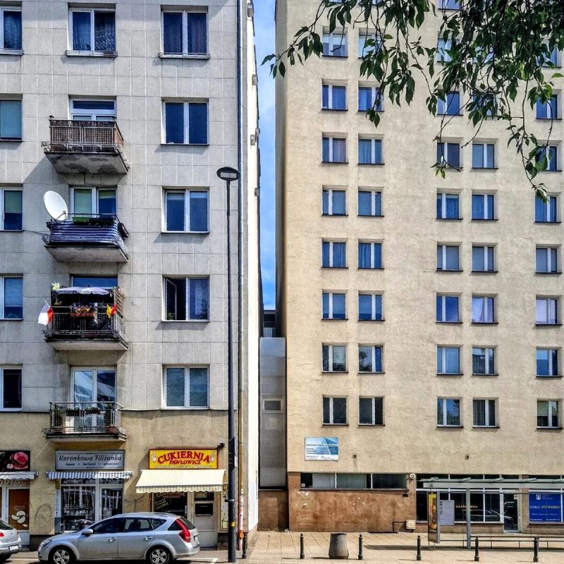 Onde: Varsóvia • 06 de Março - 2026 |Construída entre dois prédios em Varsóvia, a Keret House tem apenas 1 metro de largura.