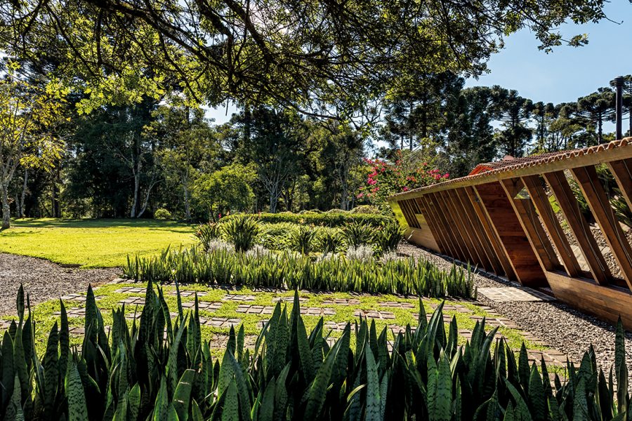 Onde: Irati • 14 de Maio - 2020 | Fotos Eduardo MacariosAraucárias nativas e madeira de pinho do antigo moinho de trigo da família transformaram a casa de chácara de 350 m² em um refúgio contemplativo