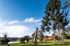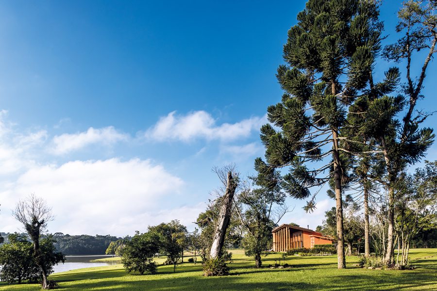 A Chácara do Pinho, em Irati, interior do Paraná, encantou os arquitetos Natalia Canalli e Fernando Antonio Canalli, do escritório Canalli Arquitetura desde a primeira visita: “Chegando na chácara nos deparamos com uma paisagem exuberante, um lindo lago e uma floresta densa com muitas araucárias nativas. É um local de muitas memórias afetivas da família e muito bem preservado, ideal para comungar arquitetura, memória, ânimo e natureza em um círculo contínuo”, relembra Fernando.