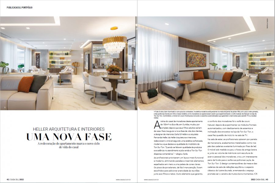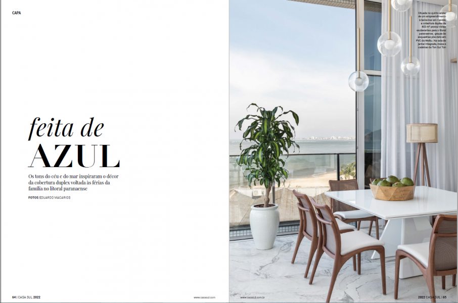O projeto que estampa nossa capa, assinado pela arquiteta Alessandra Gandolfi com Weiku, Ton Sur Ton e Construtora Golpar, é uma cobertura duplex, em Caiobá, no litoral paranaense, que foi setorizada para atender tanto ao casal de proprietários quanto aos seus filhos, que trazem amigos para as férias de verão.