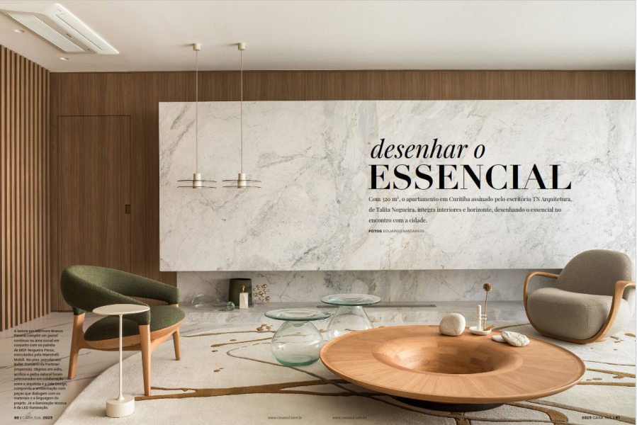 Nessa edição de Casa Sul o projeto de capa é um apartamento de Talita Nogueira inspirado no skyline de Curitiba, onde cada linha foi desenhada com a intenção de revelar o essencial. Uma arquitetura que acompanha, sem excessos, o ritmo de quem vive ali.