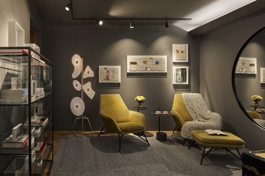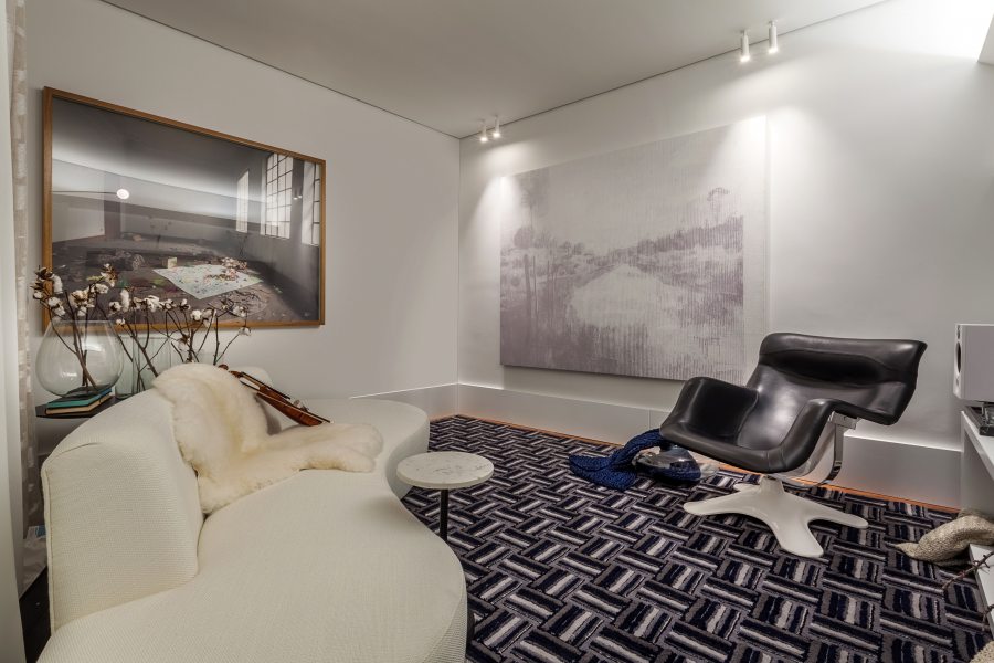 Minimalista e funcional, a sala foi idealizada para que aqui a música seja apreciada em sua forma mais pura. Para isso, o espaço valoriza a simplicidade e a atmosfera humanizada. Com essência escandinava no uso de materiais secos, o projeto se vale de peças de design assinado e obras de arte de peso, com curadoria precisa. Tudo serve para apurar os sentidos: até o aroma, que proporciona uma experiência única e reconfortante. Detalhe para o tapete, que remete às teclas do piano.